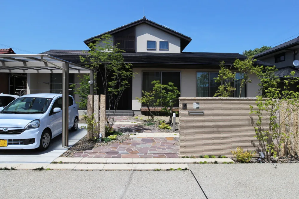 落ち着いた和風の佇まいに合わせた、広がりを感じるエクステリア