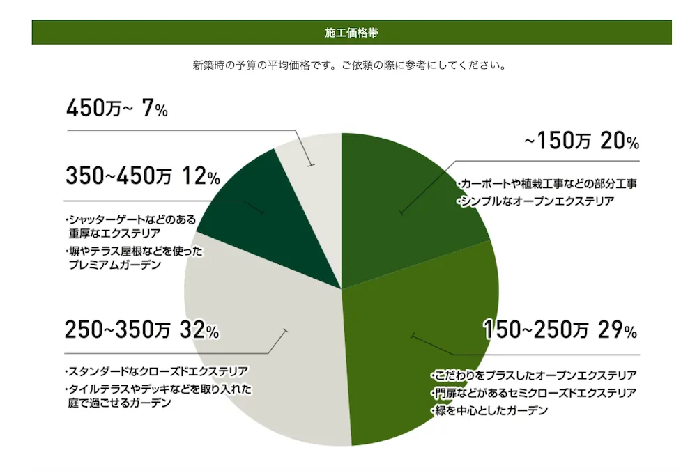 実際、デコガーデンで施工いただいたお客様の81%が「350万円以内」で理想のエクステリアを実現されています。