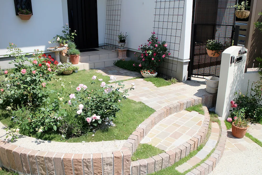 門柱やアプローチを直線的に配置するのではなく、少し角度をつけたり曲線を描くように設計すると、奥行きと上品さが生まれます。