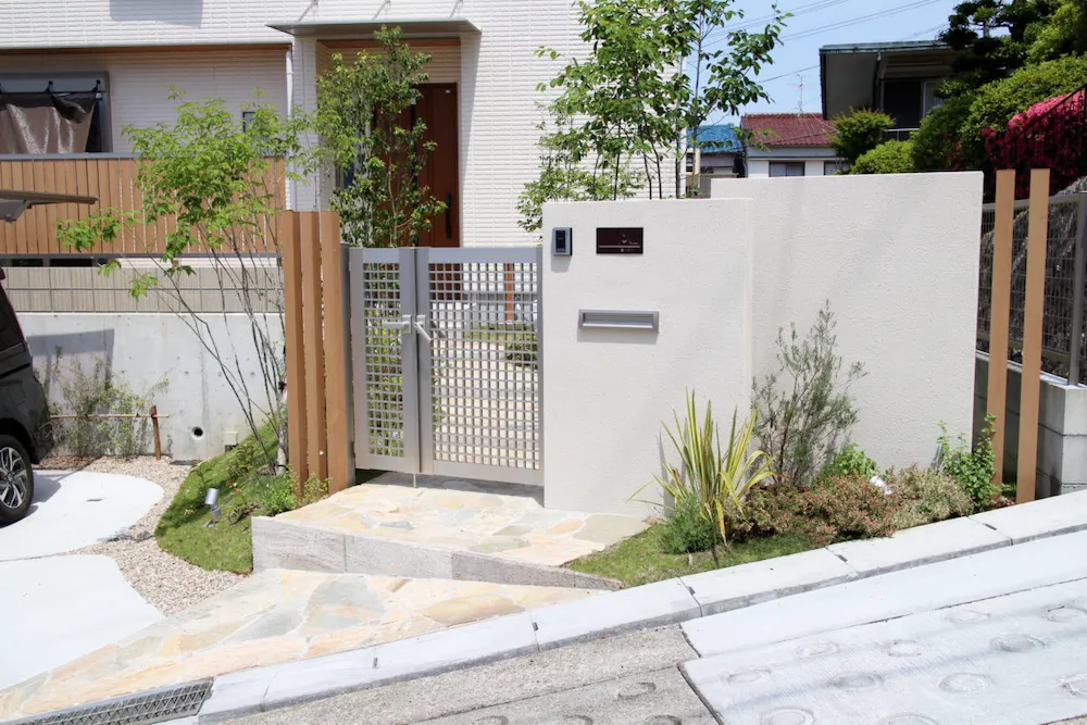 和モダン住宅では、伝統的な和の要素を現代風にアレンジした外構が魅力です。