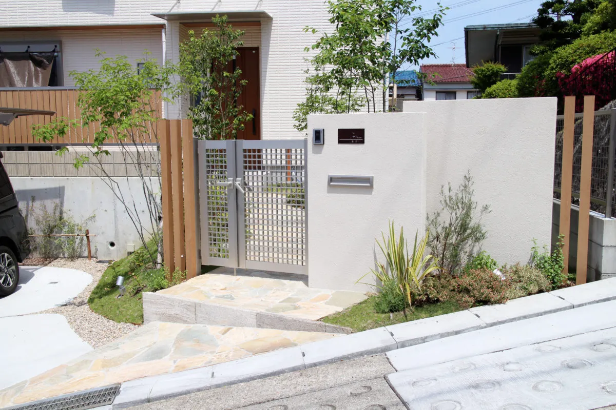 クローズ外構ならではの防犯・プライバシー性と、開放的で明るいデザインを両立した事例です。