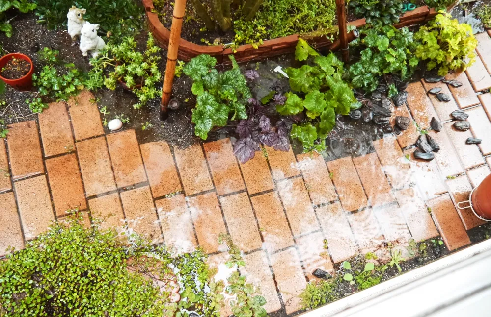 雨が降るたびに庭の一部へ水が集まるといった庭が当てはまります。